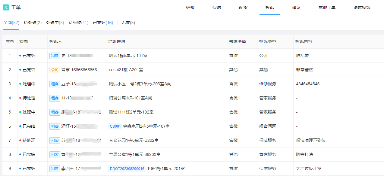 维修服务采用线上工单模式,租户通过小程序提交报修需求,管理人员在系统快捷派单给维修团队,维修进度实时同步。管理人员人均管理房源量可提升至传统模式的2倍以上。